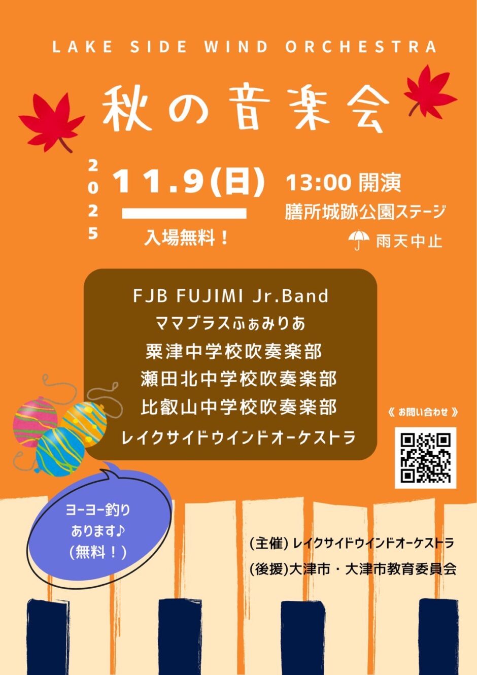 今年も、レイクサイドウインドオーケストラ主催の「秋の音楽会」の季節がやってまいりました!