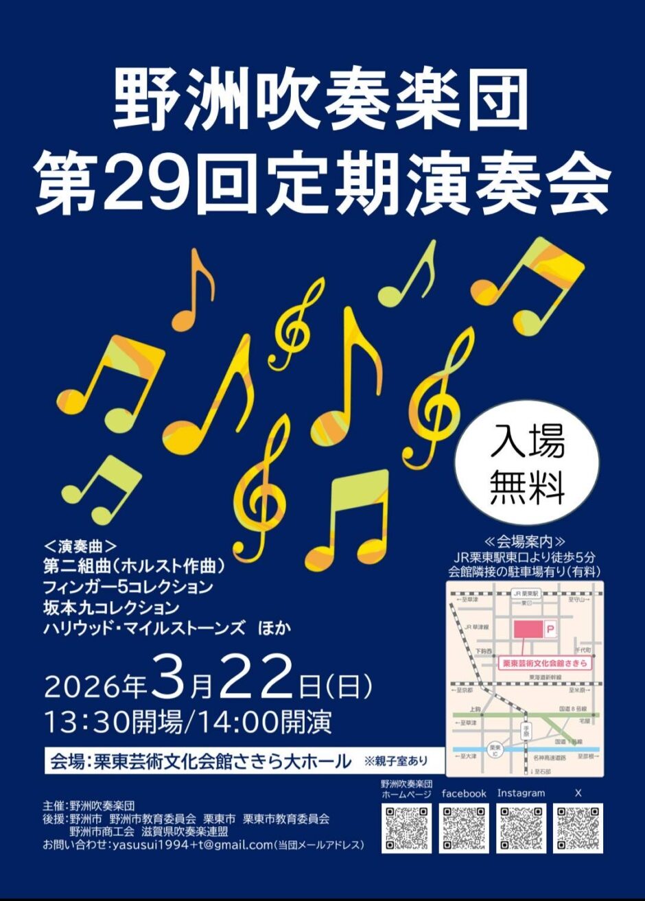 2026年3月22日(日) 野洲吹奏楽団 第29回定期演奏会