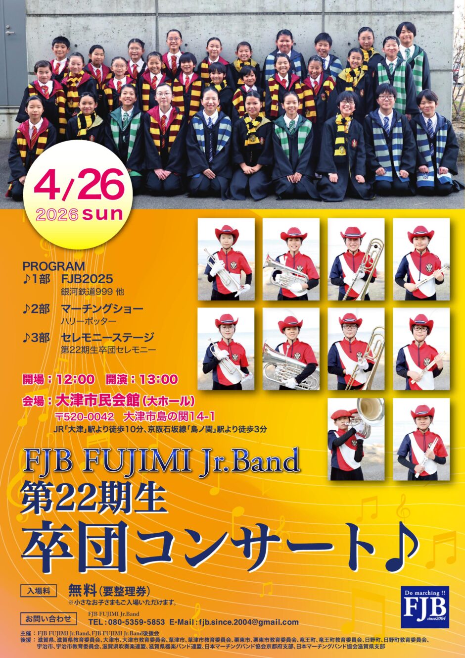 1部 FJB2025 銀河鉄道999 他 2部 マーチングショー ハリーポッター 他 3部 セレモニーステージ 第22期生セレモニー 他