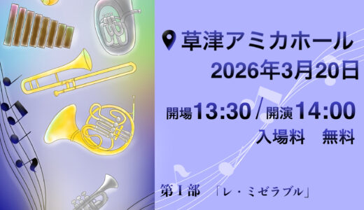 演奏会案内 2026年2月16日 2026年3月8日(日) 日野ウインドアンサンブル 第26回定期演奏会 演奏会案内 2026年2月14日 2025年12月20日(土) 光泉カトリック高等学校吹奏楽部 第14回定期演奏会 演奏会案内 2026年2月14日 2026年3月14日(土) 大津少年吹奏楽団 第53回定期演奏会 演奏会案内 2026年2月10日 2026年3月20日(金) 滋賀県立堅田高等学校吹奏楽部 第26回定期演奏会 演奏会案内 2026年2月4日 2026年3月21日(土) 立命館守山中学校・高等学校吹奏楽部 第18回定期演奏会 演奏会案内 2026年1月23日 2026年3月22日(日) 野洲吹奏楽団 第29回定期演奏会 演奏会案内